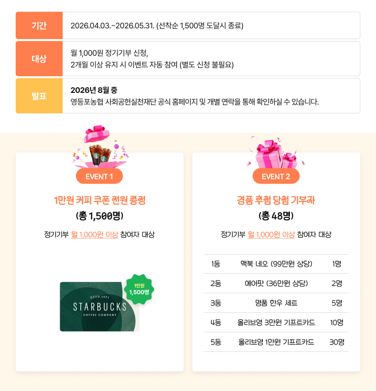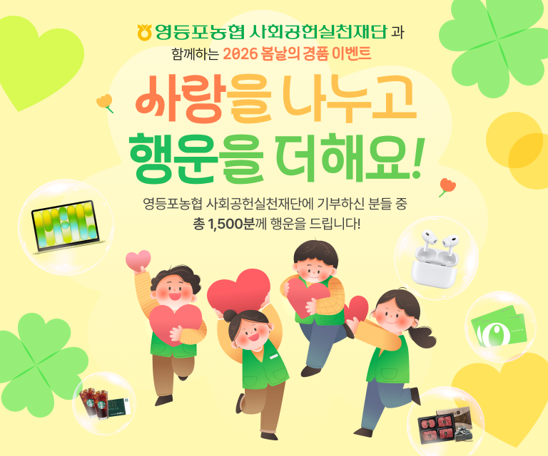- 이벤트 종료 후 당첨자는 영등포농협 사회공헌실천재단 홈페이지에 기재될 예정입니다.
